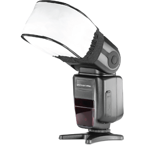 Difusor Softbox de Estudio Universal. Convierte la luz fuete del flash operada por batería a luz más suave, reduciendo sombras y puntos claientes como lo que muestra en nuestras fotos.